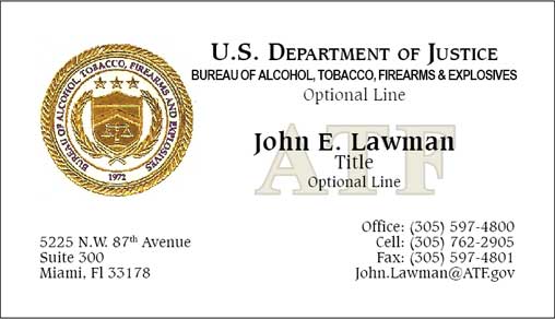 Alcohol, Tobacco, Firearms & Explosives: Business Cards