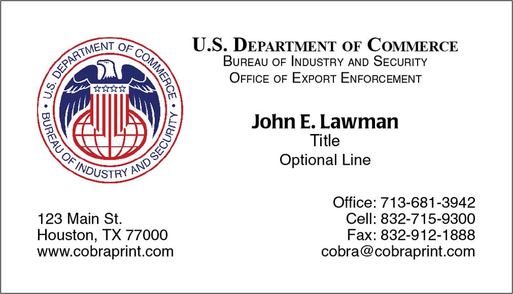 U. S. Department of Commerce - Bureau of Industry and Security Office of Export Enforcement: Business Cards